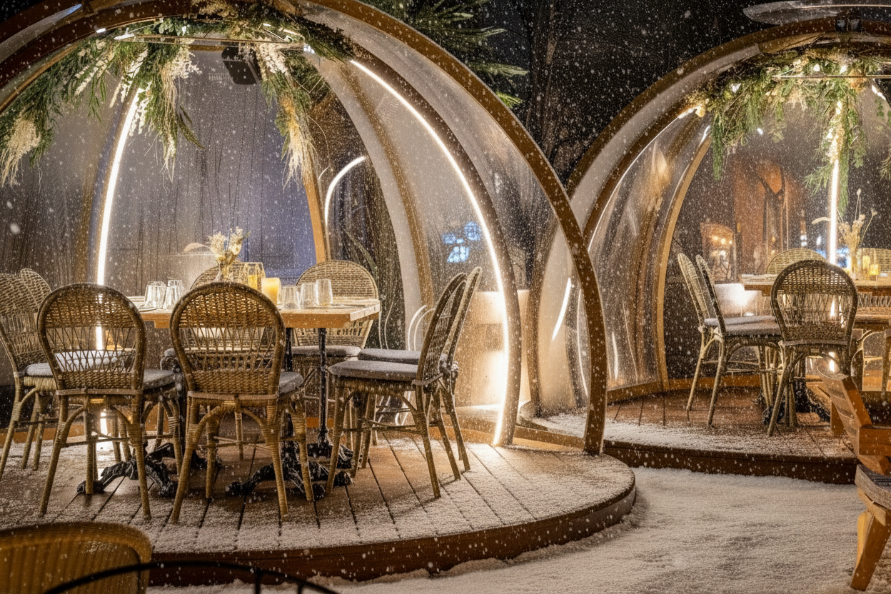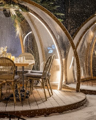 Settle into your own private igloo, where a white Christmas is guaranteed, the perfect setting to welcome 2026 in style. Enjoy an intimate space to celebrate, unwind, and toast to the year ahead.