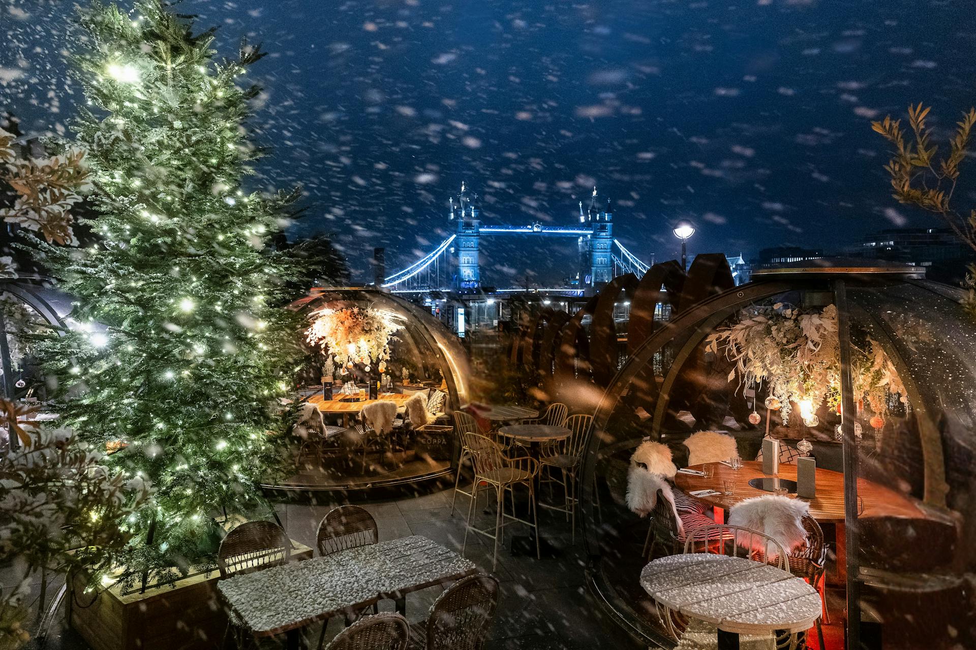 Located on our terrace with spectacular views of the city are ten riverside igloos - private spaces just for you, friends and family. Whether you're enjoying breakfast, lunch, or dinner, our igloos offer a place to celebrate in your own space, with the river as your backdrop.